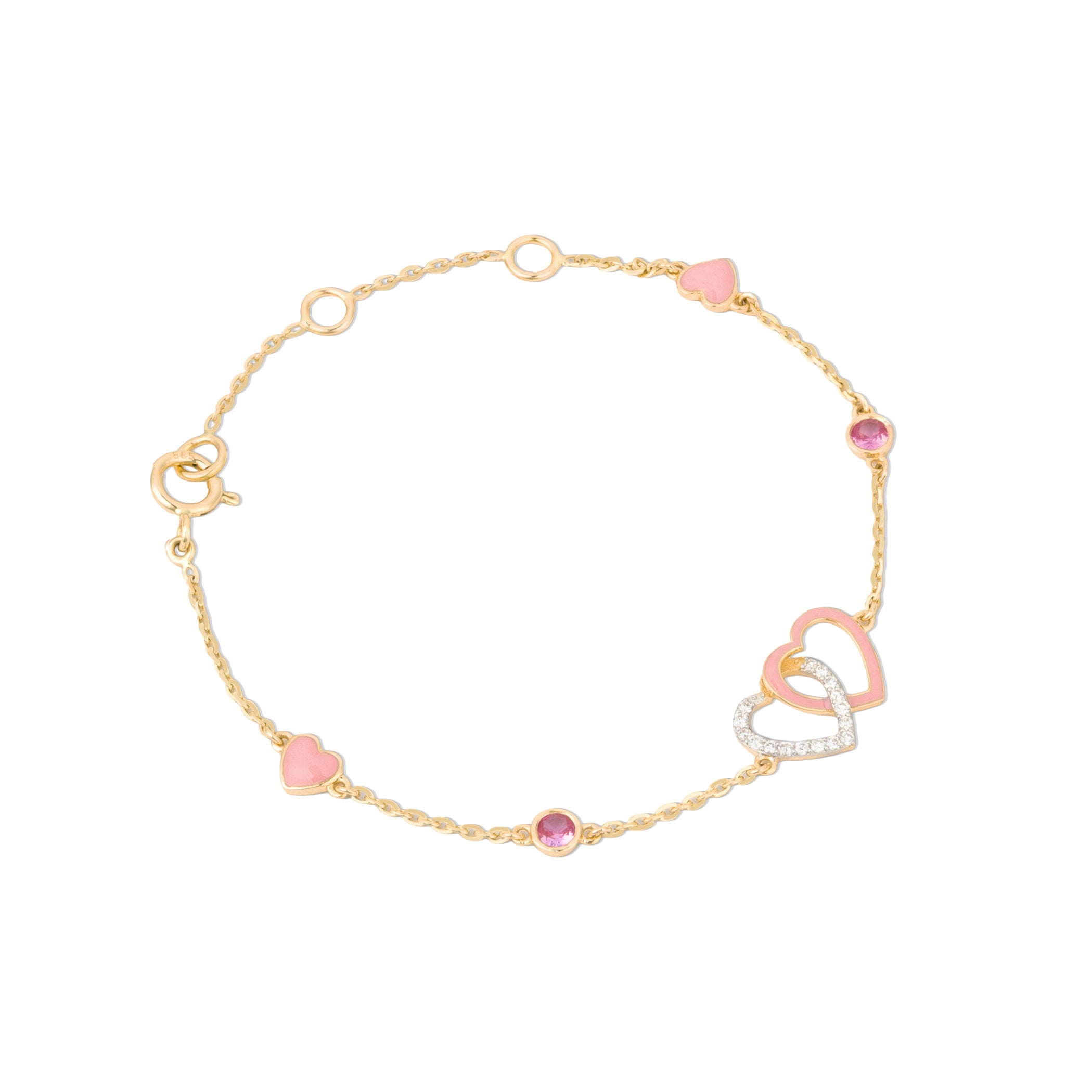 A parade of happy hearts! This Pop Bracelet showcases multiple heart outlines in lively colors, and a heart with twinkling diamonds, gentle on tiny wrists and full of cheerful charm for your little one.
