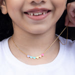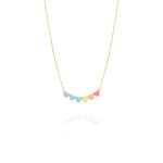 A Pastel Rainbow you can wear every day. This dainty heart neckchain features seven enamel hearts in soft dreamy shades that brighten any outfit. Crafted in pure gold with smooth baby friendly edges, it is the perfect gift for tiny trendsetters and their mums. Lightweight, colourful, and full of joy, this piece adds a playful sparkle to every moment.