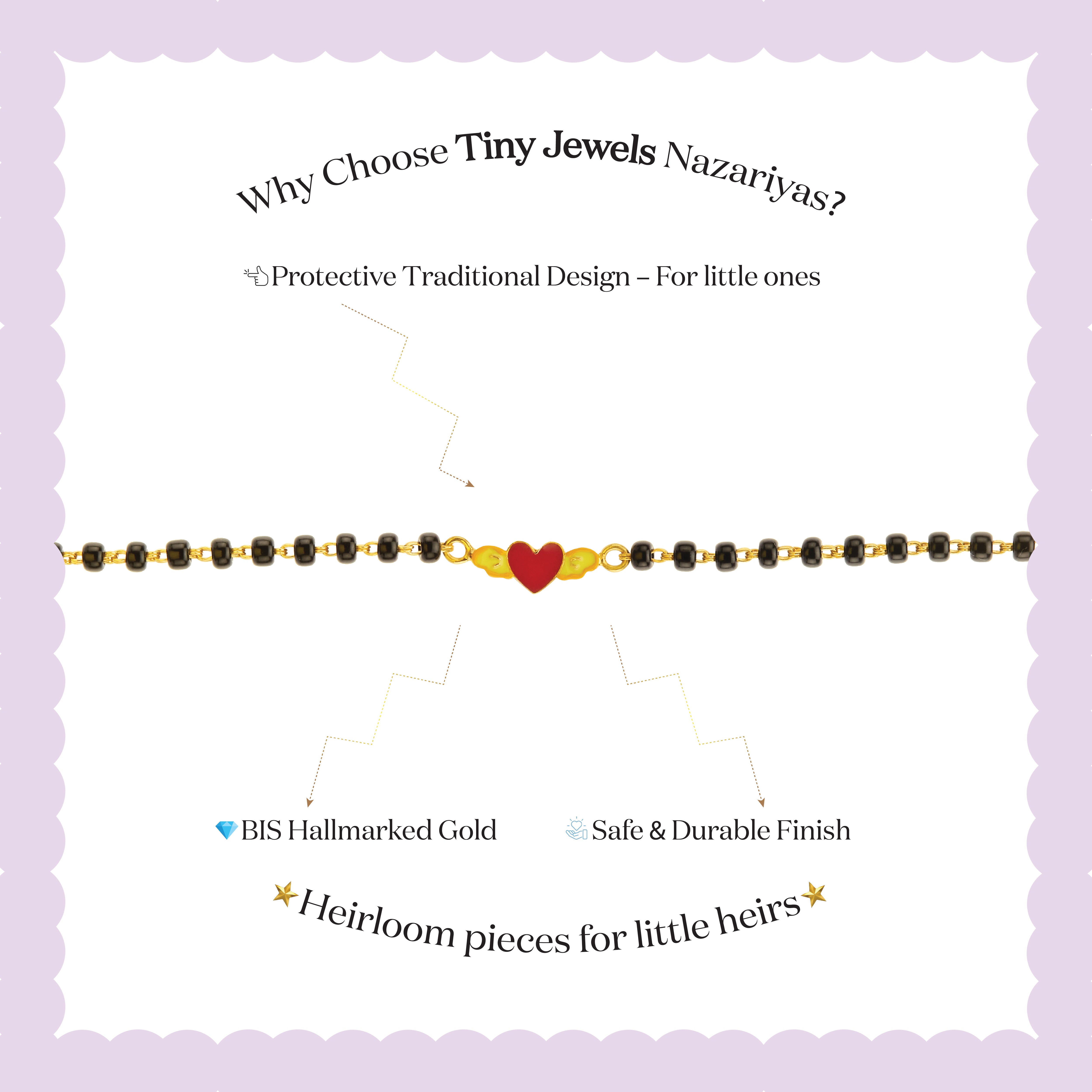 Celebrate tender love and gentle protection with our Wings of Love Nazariya in solid gold. The bright heart, lifted by dreamy wings, brings a perfect blend of affection and safety to every little wrist. Made with durable, hypoallergenic gold, this charm feels soft on delicate skin and is designed for all-day comfort. It’s built to last through playful days while keeping watch against the world’s little troubles. Perfect for children with big hearts ready to soar. Ready to wrap them in love and ward off every worry?