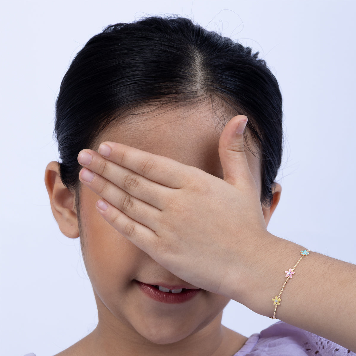 A tiny garden on little wrists! This Pop Bracelet blooms with cute mini flowers in soft, happy colors, each sparkling with a lab-grown diamond at its heart. Gentle and fun, it’s made to brighten every little moment.
