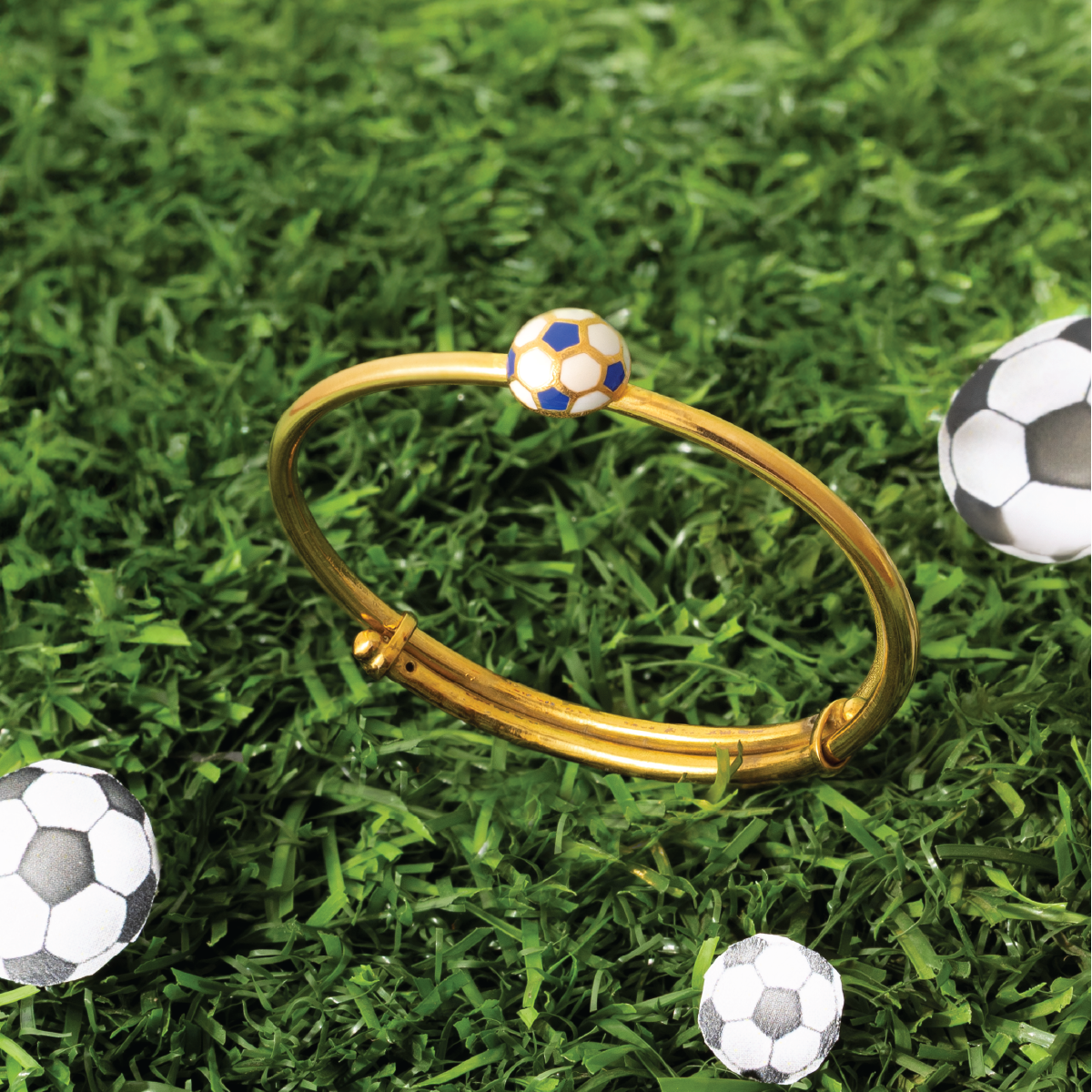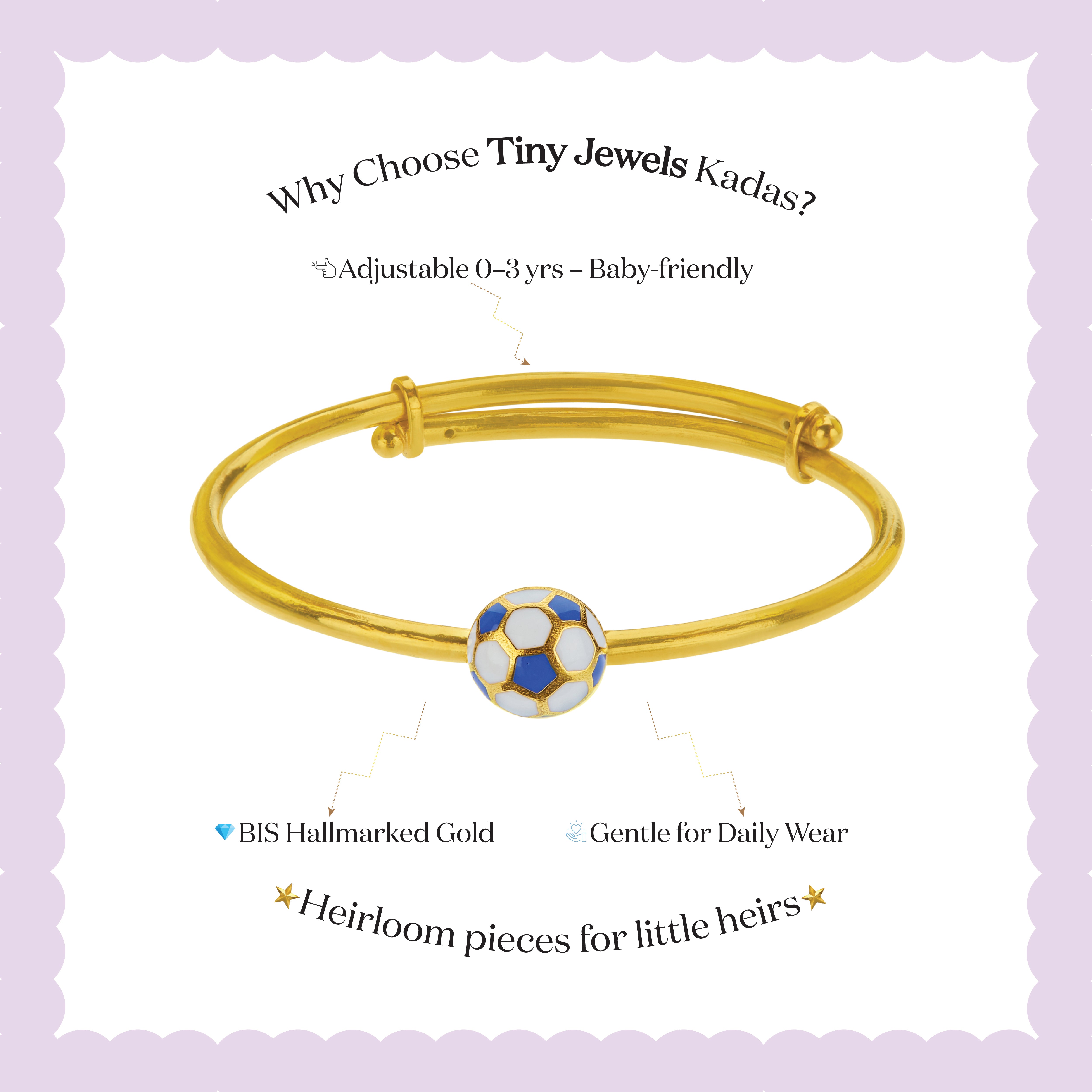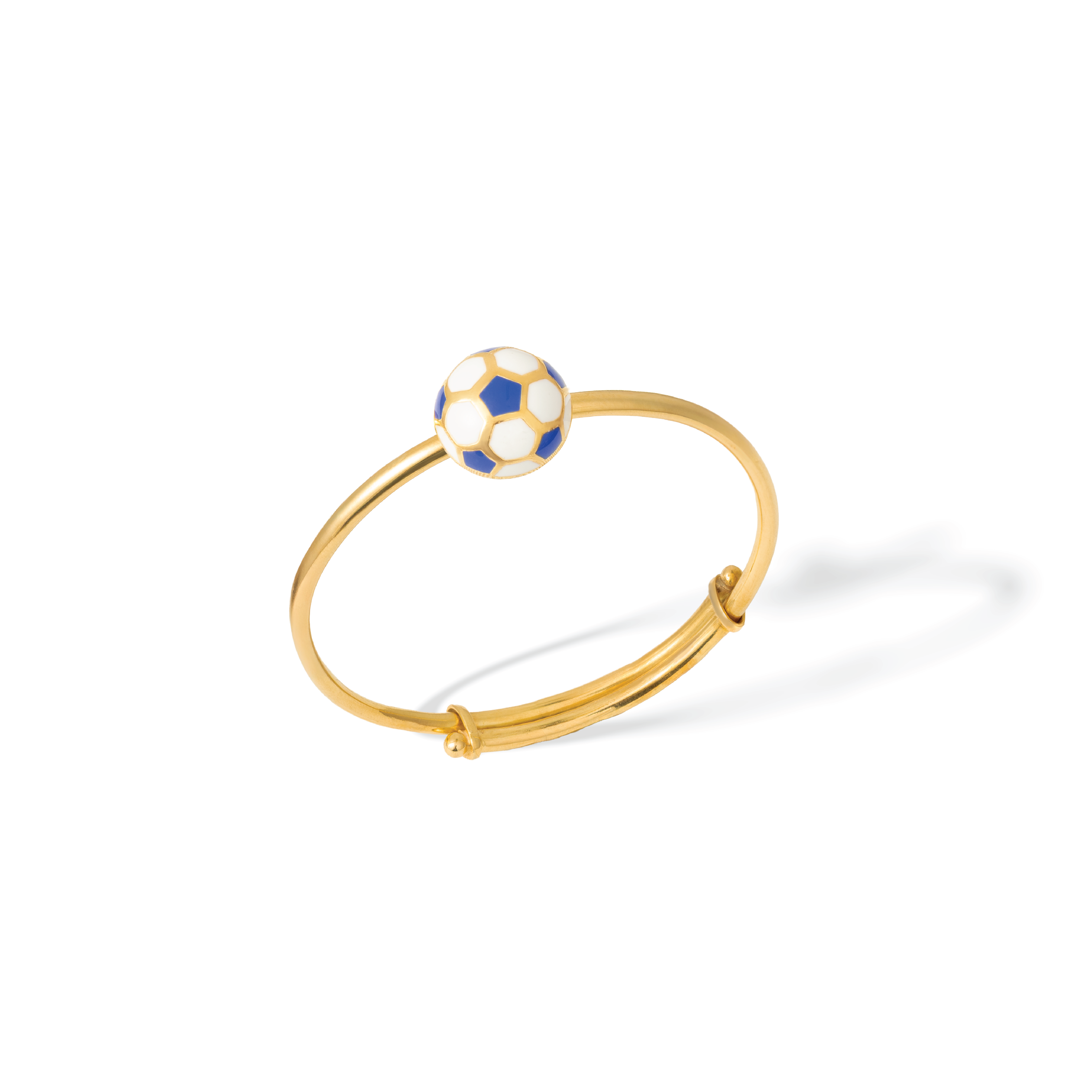 Cheer on every tiny champion with our Goal Getter Kada in Solid gold. Featuring a bold navy blue football, this durable and hypoallergenic kada celebrates a sporty style. Shop for this and give everyday comfort to little wrists. This kada is perfect for energetic kids who love to play hard and shine bright. If spoiling your little one is your goal, then this is the kada for them.