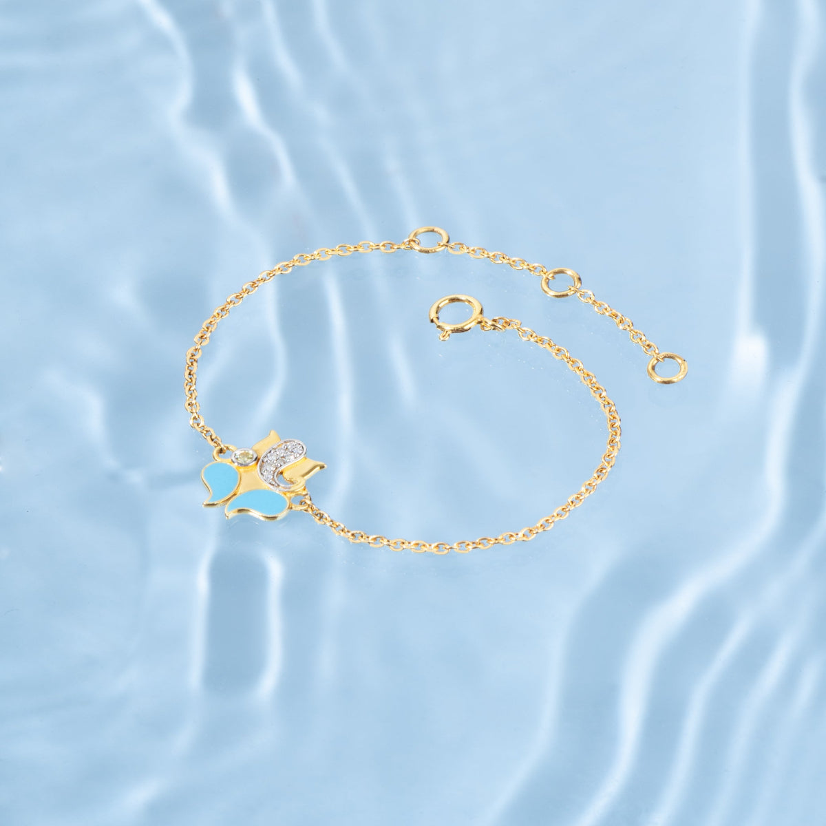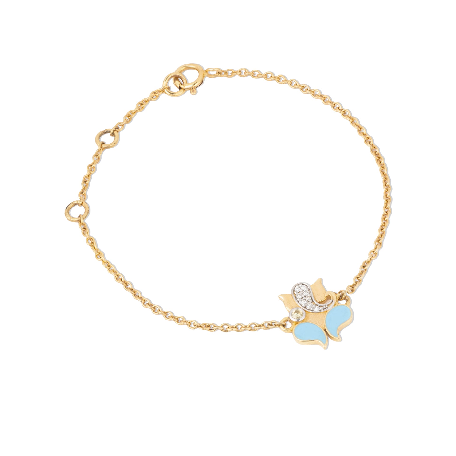 This adorable bracelet features a blue enamel Ganpati charm set in hallmarked 14kt  gold, making it the perfect choice for parents looking for meaningful kids jewellery. The soft enamel shade, smooth edges, and lightweight design make it comfortable for daily wear for both boys and girls.